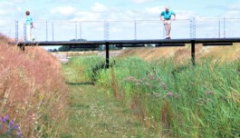 Ce paysage hydraulique réinterprété, infiltre et épure les eaux pluviales de l’aire.