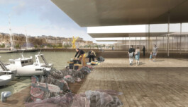 - articuler l’immense digue à la mer au rocher de la citadelle. Le projet propose un large emmarchement paysagé et un musée des bisquines ouvert sur la douve de l’ancienne digue de pierre. La grande jetée devient un théâtre de mer dédié aux compétitions nautiques.