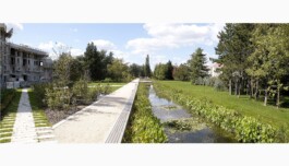 Le nouveau paysage du parc propose une intervention au sol à l’image des pièces de tissu parallèles qui composent les Kesas japonais. Un canal, un arboretum et une roseraie contemporaine (conception réalisée en collaboration avec Maurizio Galante, grand couturier) constituent les trois espaces marquants du jardin. Ils sont reliés entre eux par un chemin en serpentine qui contourne les bosquets de cèdres.