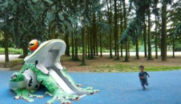 Le parc s’appuie sur le paysage fantastique des pépinières Mosser abandonnées depuis 25 ans. Cèdres, chênes, et sapins se sont développés suivant de rigoureuses lignes de plantation.