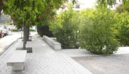 La plantation de Magnolia se prologera vers la rue Salengro, accompagnant deux massifs arbustifs décoratifs qui délimiteront une allée centrale. Lieu de repos ou d’attente, cette allée sera équipée de bancs à lattes de bois traditionnels.