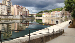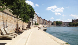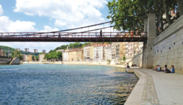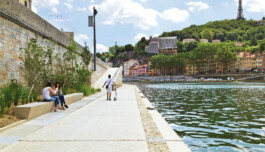 Les quais bas complétés, créés ou élargis, assurent une promenade continue, parcourant au fil de l’eau, la cité lyonnaise.