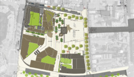 La place basse est aplanie, pour accueillir le marché de plein vent et les manifestations culturelles municipales.