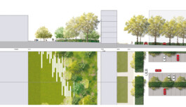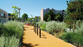 Le projet ANRU vise à dresser une armature d’espaces publics continus le long de cette traversée. Un ensemble de places, de parcs, d’espaces de jeux, de chemins jardinés et de voies plantées viennent envelopper tous les équipements publics pour offrir des espaces publics de qualité au cœur de ce quartier-ville de 30 hectares.